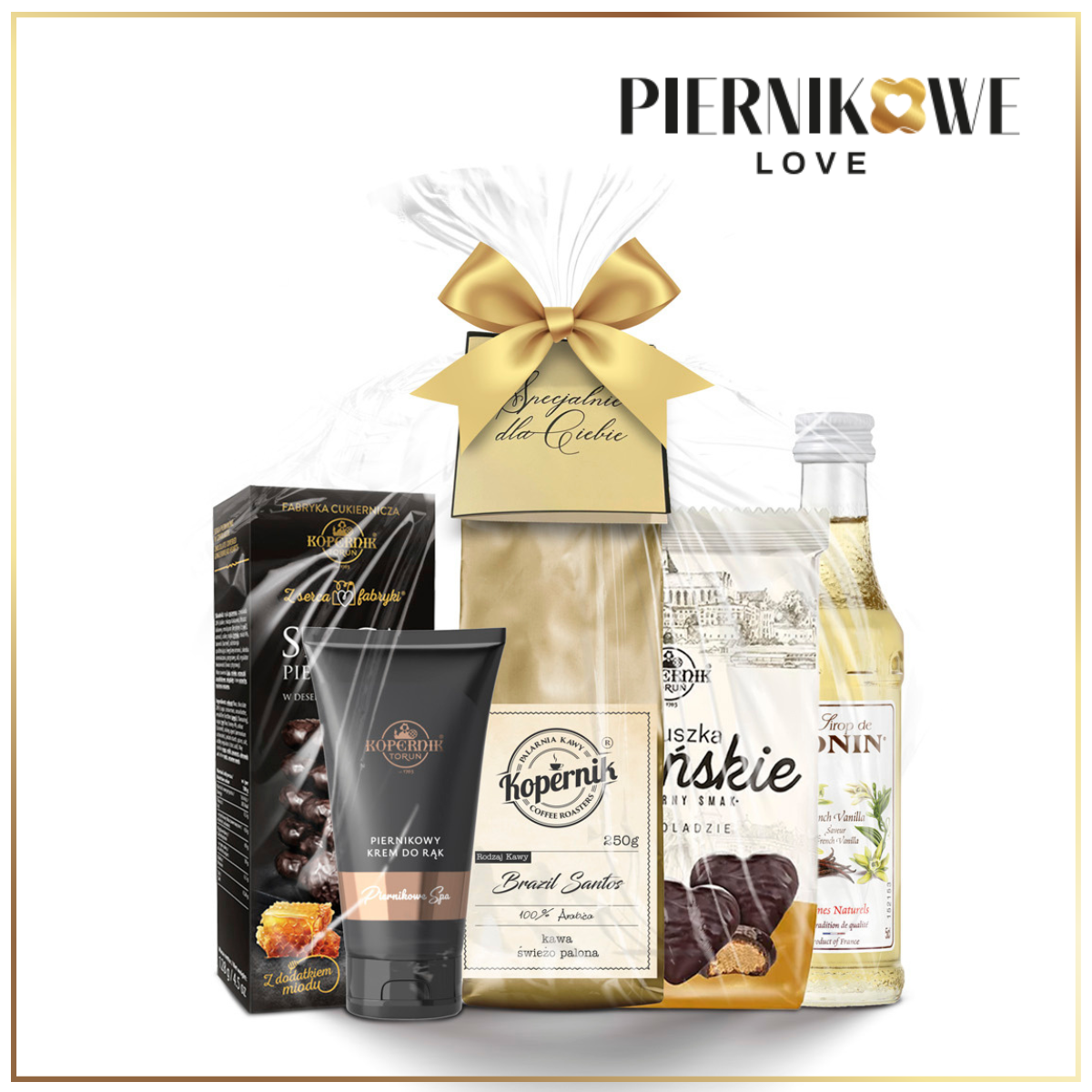 Ten kompleksowy zestaw na każdą okazję łączy w sobie to, co najlepsze: wyśmienitą kawę, słodkie pierniki, aromatyczny syrop do personalizacji napojów oraz relaksujący krem do rąk. To więcej niż tylko produkty – to doświadczenie pełne smaków, zapachów i troski. Idealny jako prezent na urodziny, imieniny, święta, czy po prostu jako wyraz wdzięczności. To uniwersalny zestaw upominkowy, który z pewnością zachwyci każdego obdarowanego, niezależnie od okazji.